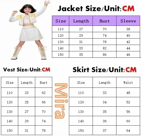 140: Height:130-140cm / 51.2-55.1inch; Bust:80-84cm / 31.5-33.1inch; Waist:58-61cm /22.8-24.0inch; Hip:94-98cm / 37.0-38.6inch;