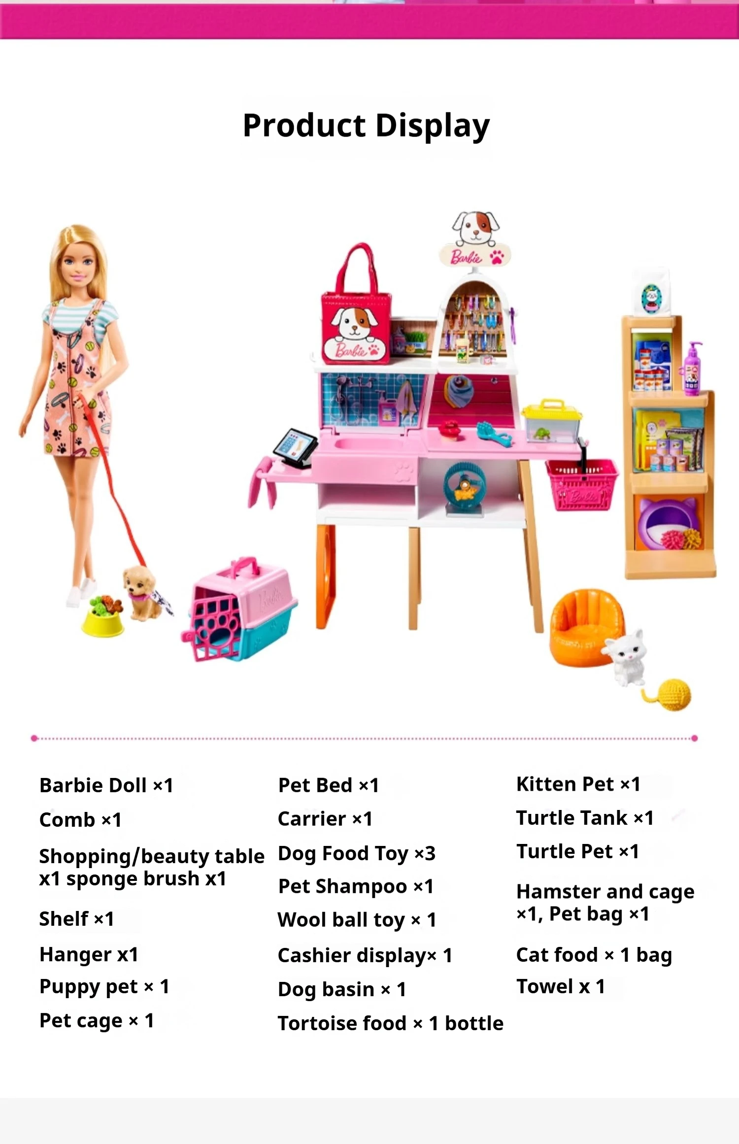 Barbie Doll Pet Store Set Fun Professional Experience Rich Accessories Fashion Matching DIY Girls Children Play Home Toy Gifts